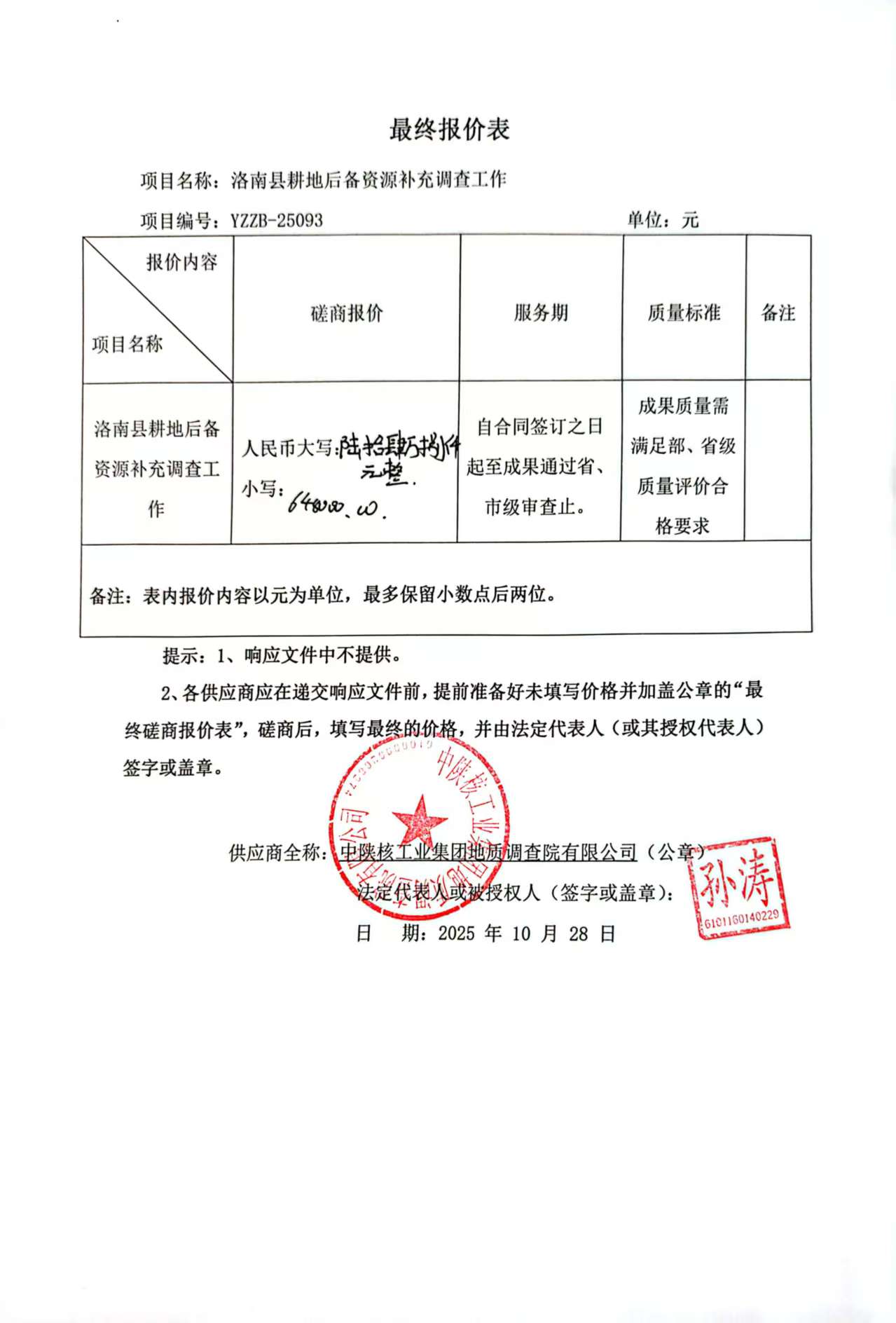 ******资源局洛南县耕地后备资源补充调查工作中标(成交)明细.pdf 洛南县耕地后备资源补充调查工作--竞争性磋商文件25.10.09.pdf 中小企业声明函.pdf 最终报价表.jpg