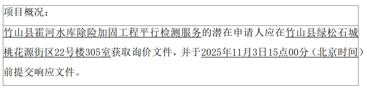 2. 项目名称:竹山县霍河水库除险加固工程平行检测服务