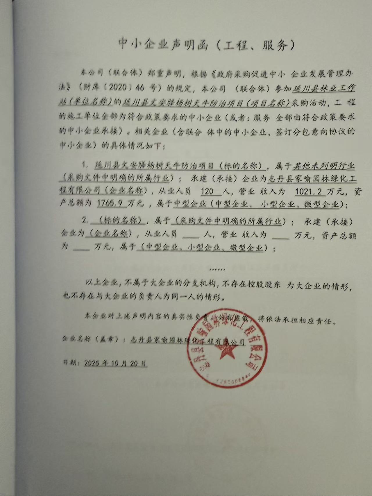 延川县林业工作站延川县文安驿杨树天牛防治项目中标(成交)明细.pdf 竞争性磋商文件-延川县文安驿杨树天牛防治项目.pdf 中小企业声明函.jpg